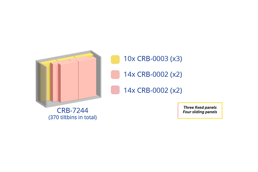 • Integrierte Kippbehältermodule pro verschiebbarer Platte: 14x CRB-0002 (x4)