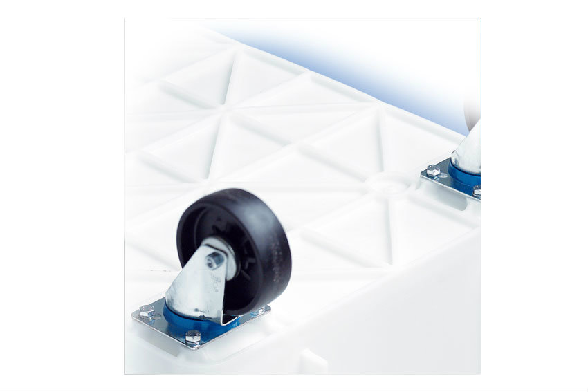 - Design: 2 fixed and 2 swivel castors, with galvanised wheel forks