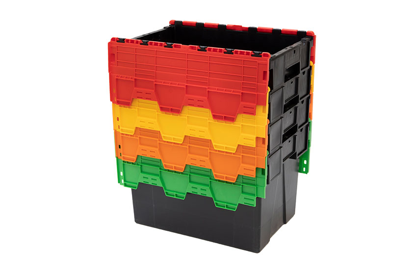 Attached lid container Ergo 63L – 600x400x367mm - black body + coloured lid - Regranulate