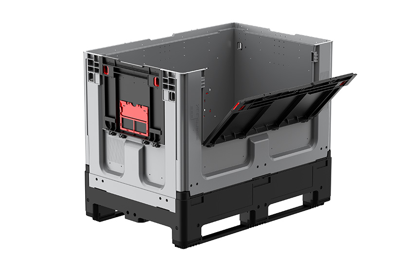 Logifold box 1200x800x958mm - 660l - closed - 2 skids - flap door 1 short + 1 long side