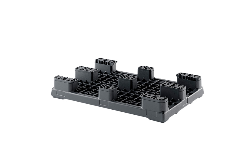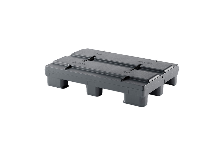 - Foldable container with 6 hinges with lid and pallet (9 legs)