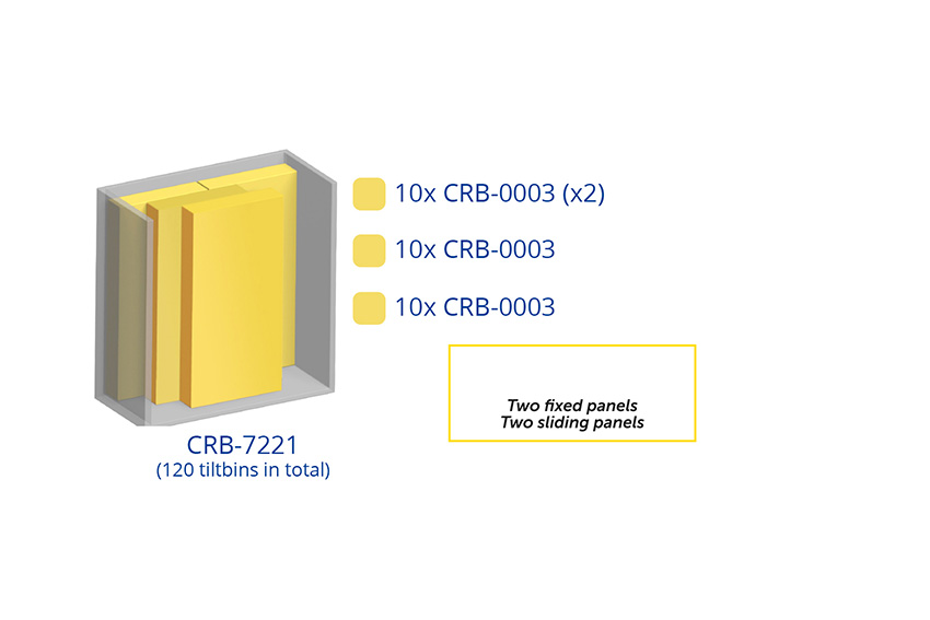 • Integrated tilting tray modules per sliding panel: 10x CRB-0003 (x2)