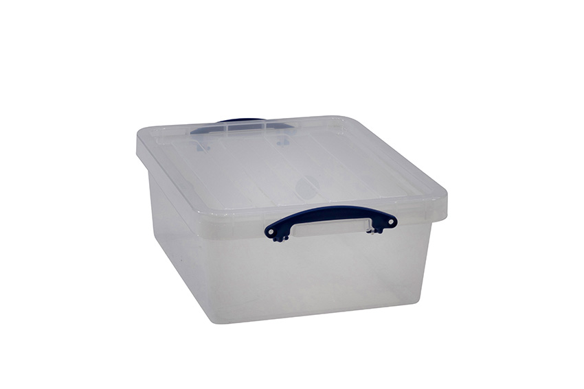 Transparent nestable reinforced box 23,5l stackable on included lid - 495x395x190mm