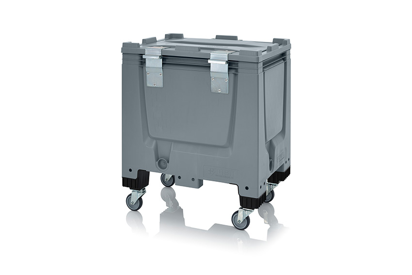 Caisse-palette 250l - 800x600x960mm- fermée -4 roues, dont 2 avec frein - couvercle pivotant serrure