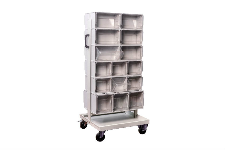Chariot métallique pour bloc-tiroir basculants Crystal Box excl. blocs-tiroirs - 610x610x1370mm